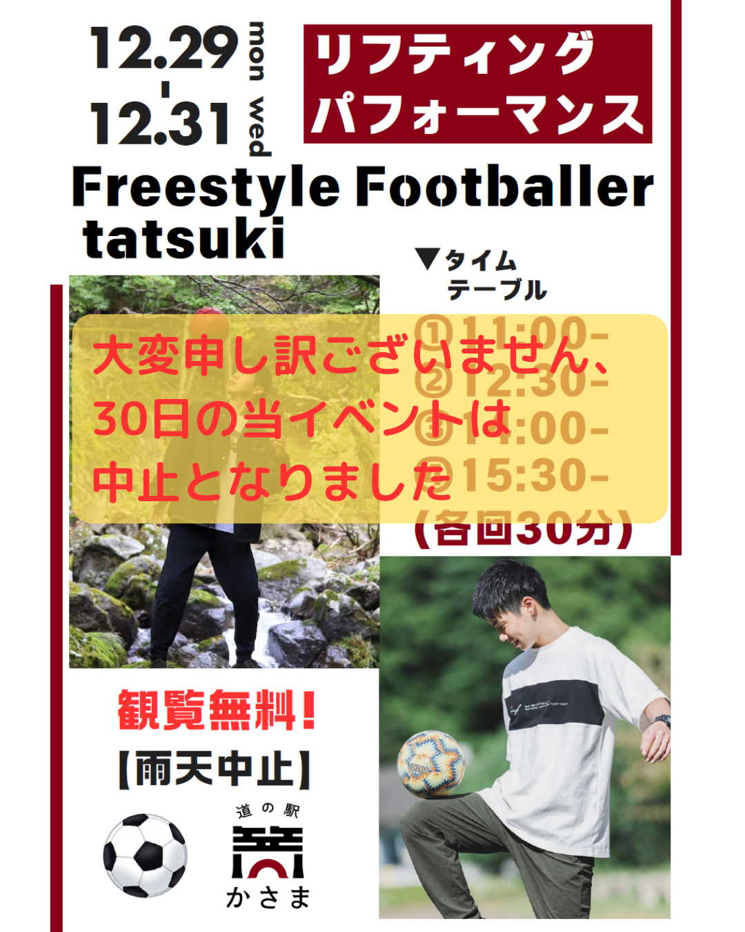 【中止のお知らせ】12/29(月)~31(水)リフティングパフォーマンス公演