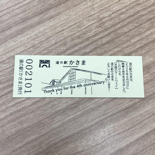 道の駅かさまオープン4周年を記念した特別記念きっぷ(非売品)を200枚限定で配布いたします。