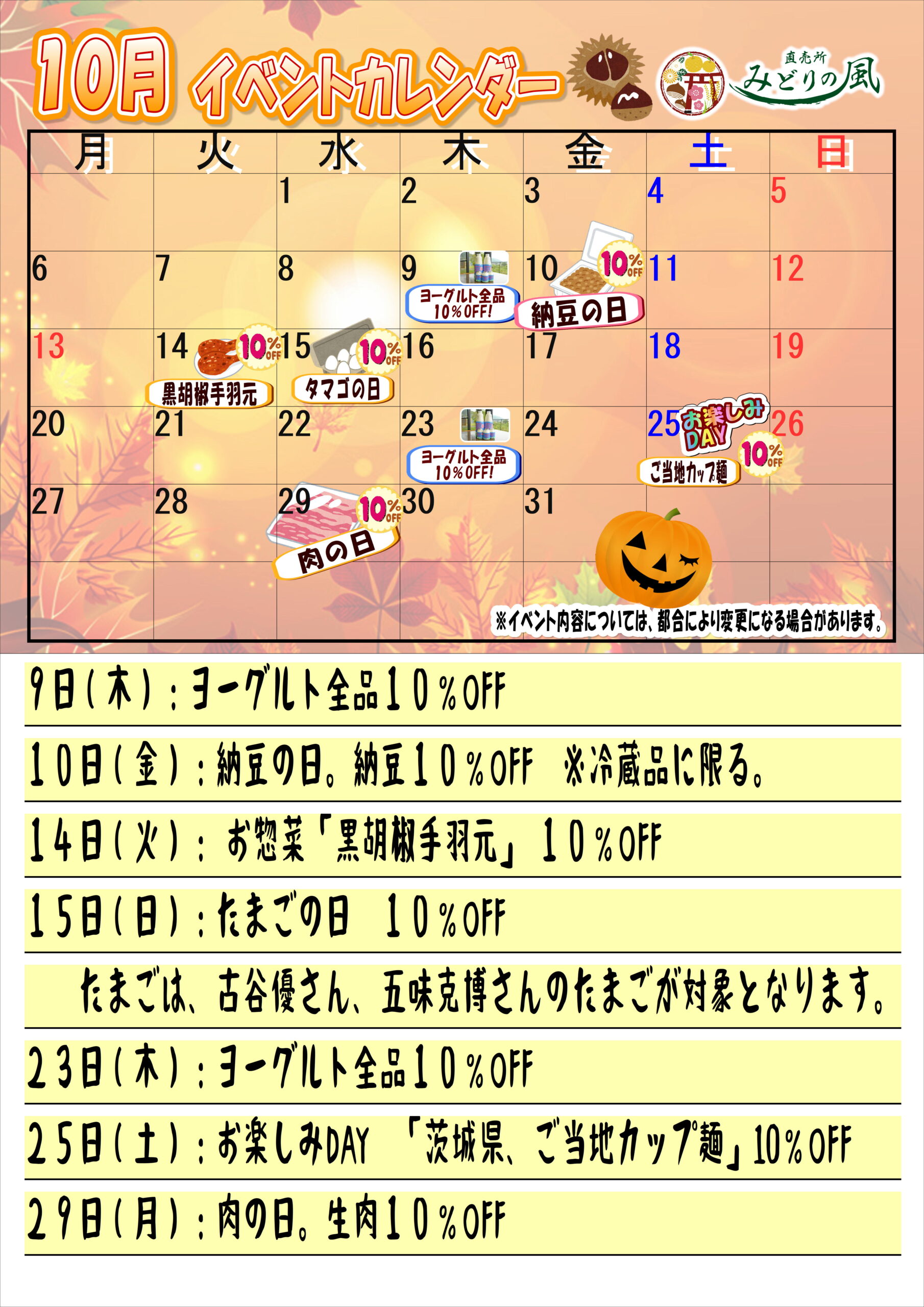 直売所「みどりの風」10月のイベントカレンダーを公開します!