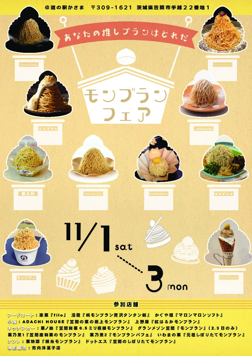 道の駅かさまでは、11月1日(土)~3日(月・祝)の3日間、「モンブランフェア」を開催します。