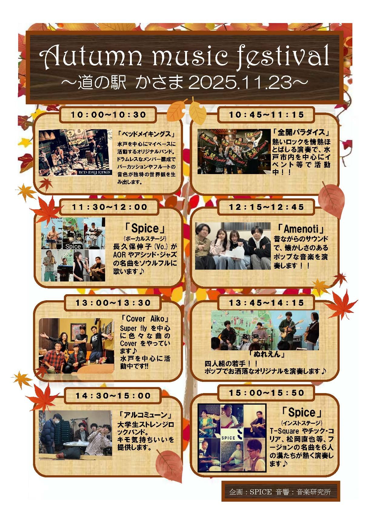 11月23日(日)に7組のバンドによるポップス・ロック・フュージョンの演奏がおこなわれます。