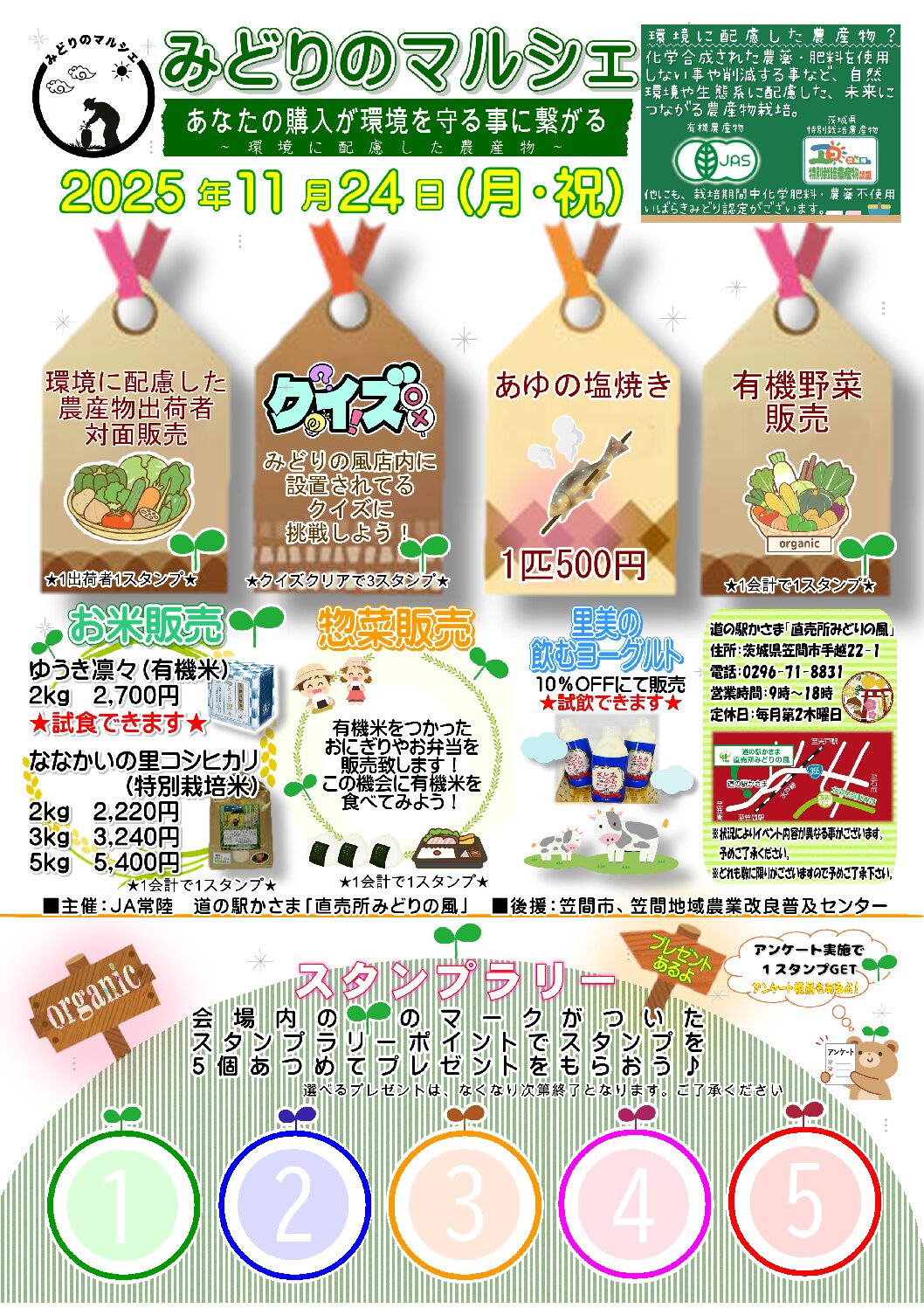当日はぜひ道の駅かさま&直売所『みどりの風』へお越しくださいませ。