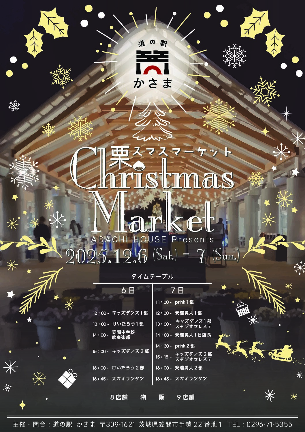 道の駅かさまでは、12月6日(土)・7日(日)の2日間に笠間観光大使の安達勇人さんプロデュースによるクリスマスイベント「ADACHI HOUSEプロデュース 栗スマスマーケット」を開催いたします。