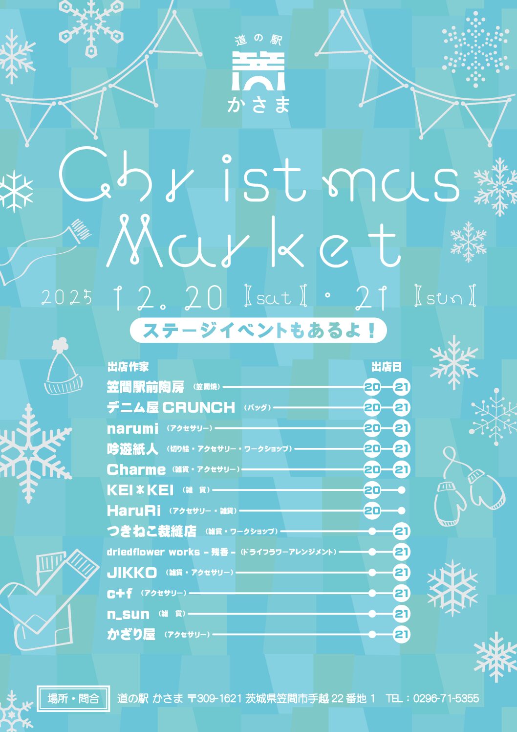 【イベント】12/20~21『道の駅かさまクリスマスマーケット』を開催します