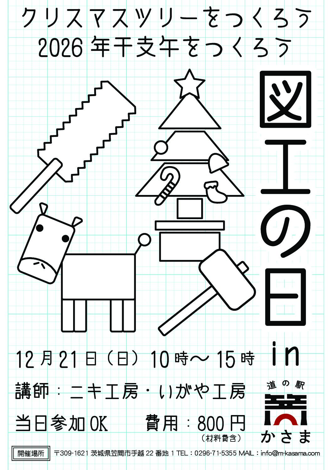 【イベント】12/21『図工の日 in 道の駅かさま』を開催します