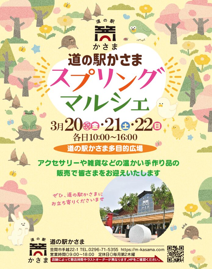 道の駅さかまでは、3月20日(金・祝)~22日(日)の3日間、「スプリングマルシェ」を開催します。