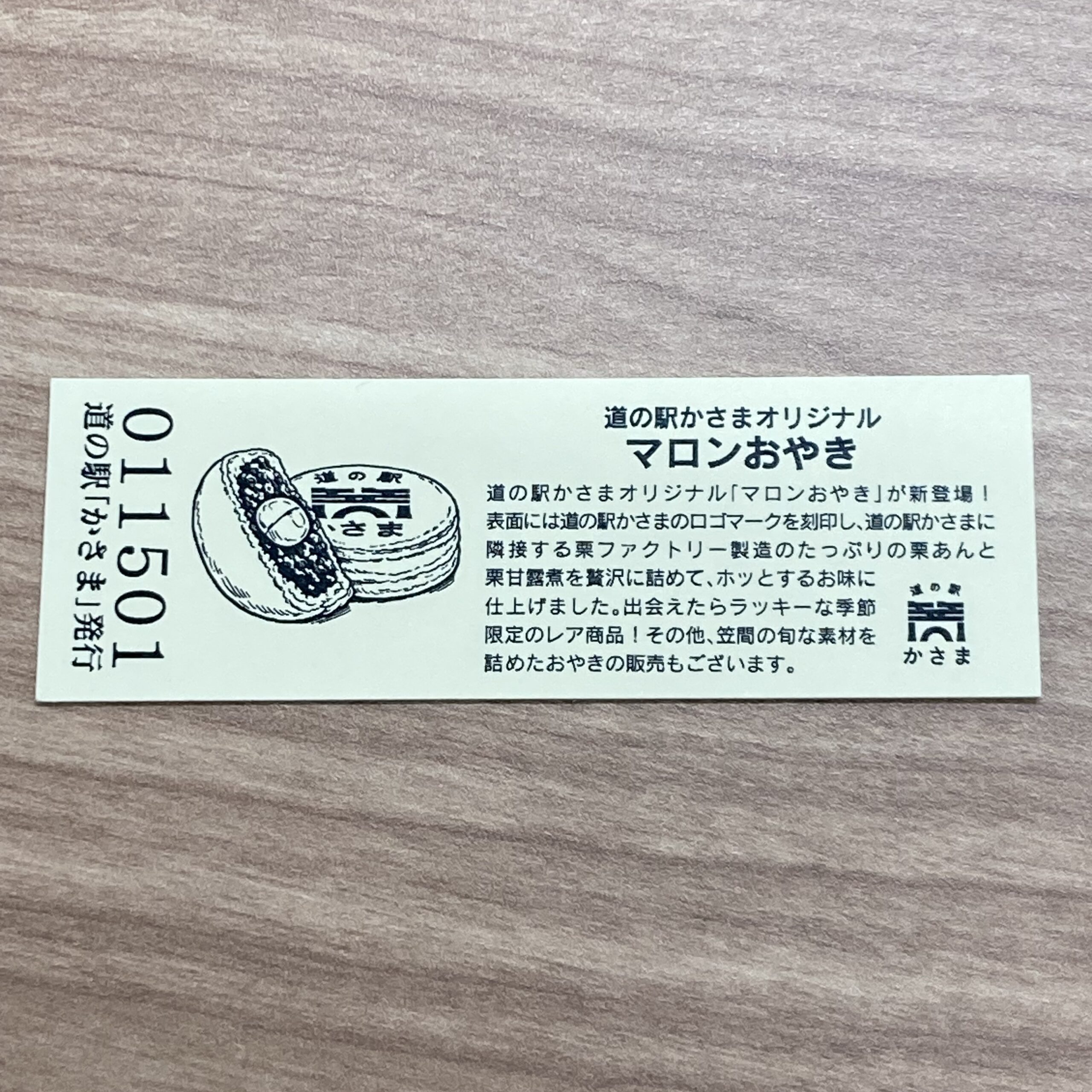 今回のデザインでは、道の駅かさま限定オリジナル商品「マロンおやき」をご紹介しています。